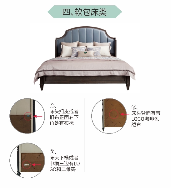 (1)床頭下橫或者中橫左邊有LOGO; 床頭下橫左邊有防偽碼。